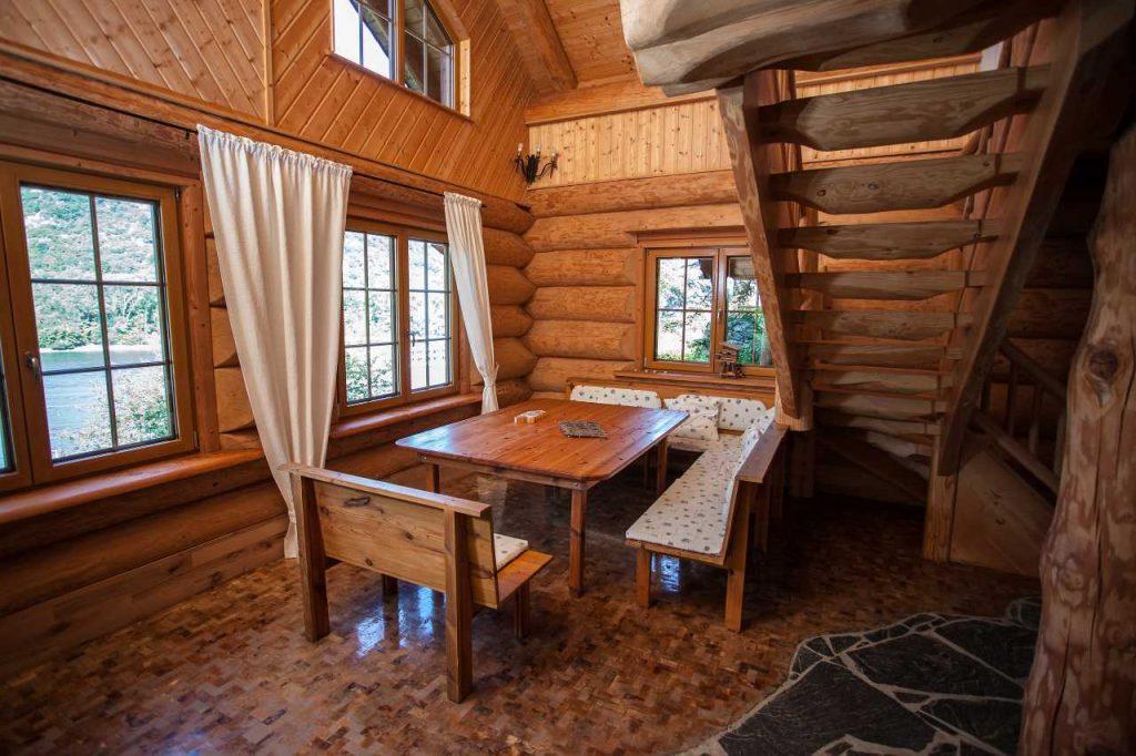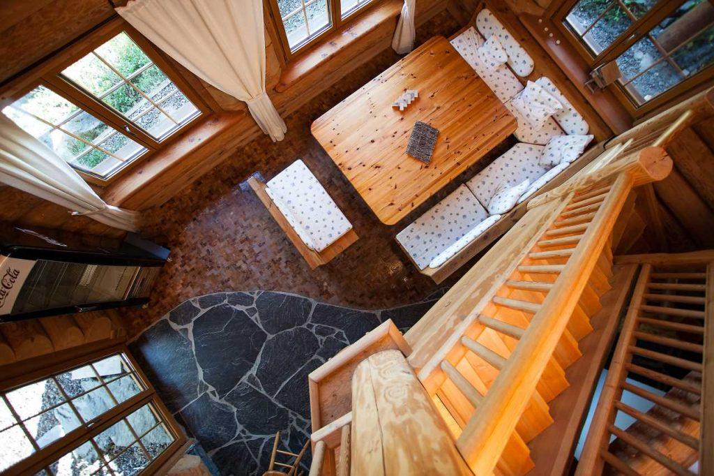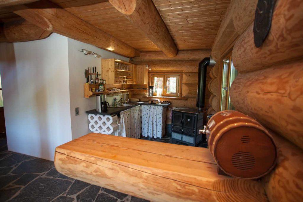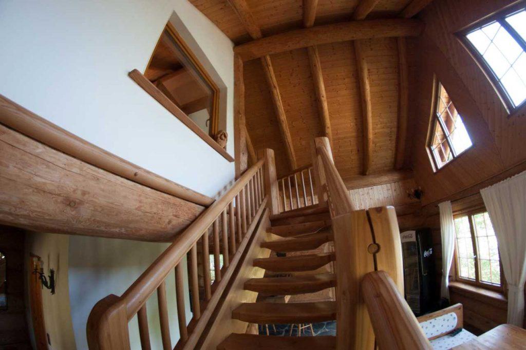 Das Haus gebaut aus massiven Douglasien-Baumstämmen, wurde auch auf der Innenseite vollständig naturbelassen. Durch das Holz entsteht ein natürliches, angenehmes und einmaliges Raumklima, das Körper und Seele wohltut.