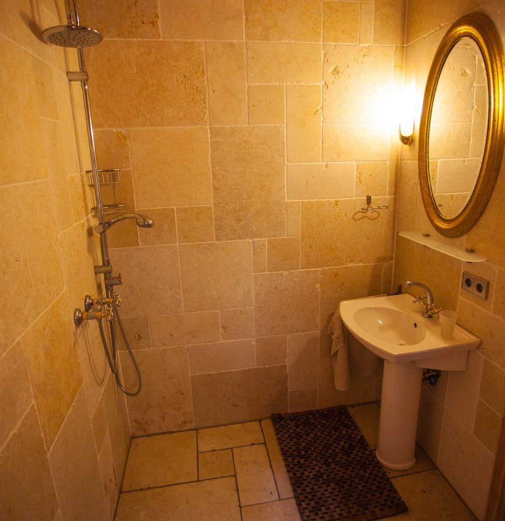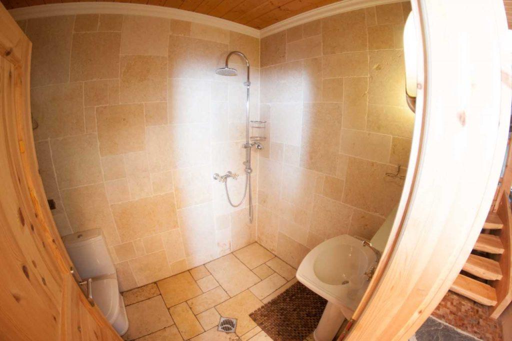 - Vielleicht kommen Sie aber auch erst gerade von einer schönen und erfüllenden Wanderung an dem Baumstammhaus an und freuen sich auf eine wohltuende Dusche.