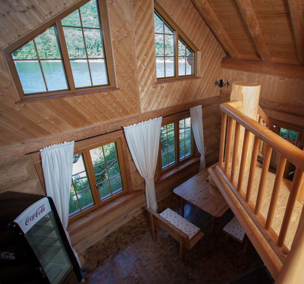 Auch alle anderen für den Bau verwendeten Materialien sind naturbelassen undunterstreichen das schlichte und urtümliche Ambiente. Im lichtdurchfluteten Innenraum befindet sich der großzügig gestaltete Wohn- und Essbereich mit einem atemberaubenden Ausblick auf den Rhein und die wunderschöne Landschaft. Über eine Freitreppe gelangt man zur Galerie und den im Dach integrierten Schlafräumen. Die einmalige Konstruktion und viele liebevoll gestalteten Details schaffen eine Wohlfühl-Atmosphäre, die den Alltag vergessen lassen und auch einen Kurzurlaub zu einem erholsamen, unvergesslich, sinnlichem Erlebnis werden lassen.