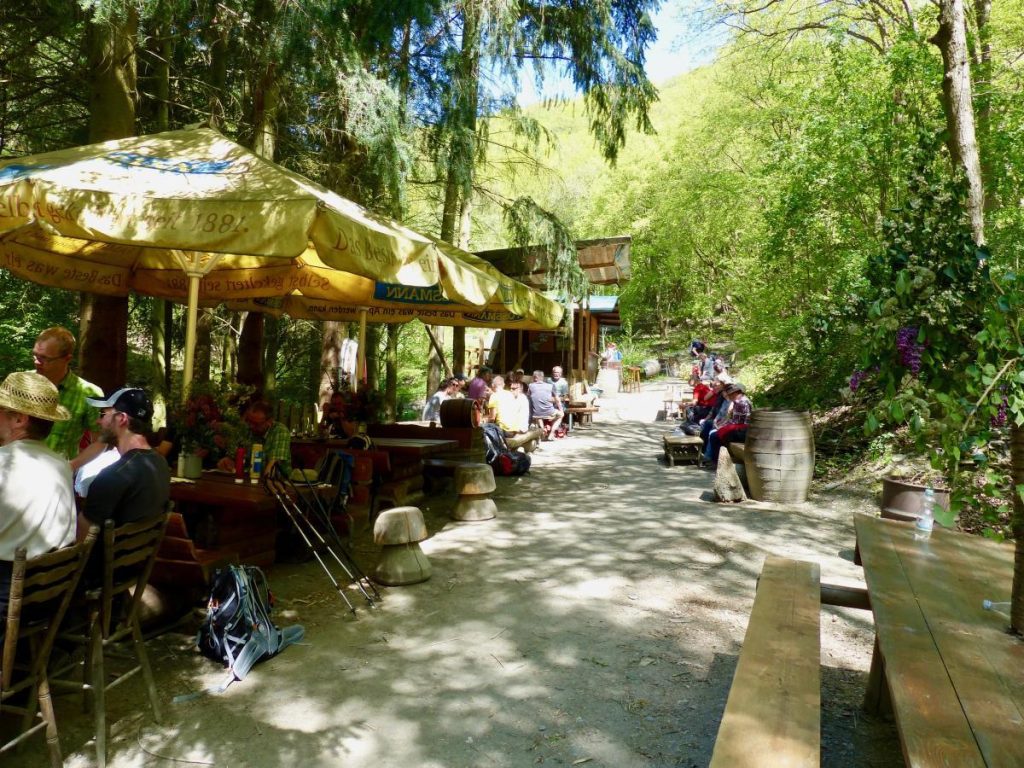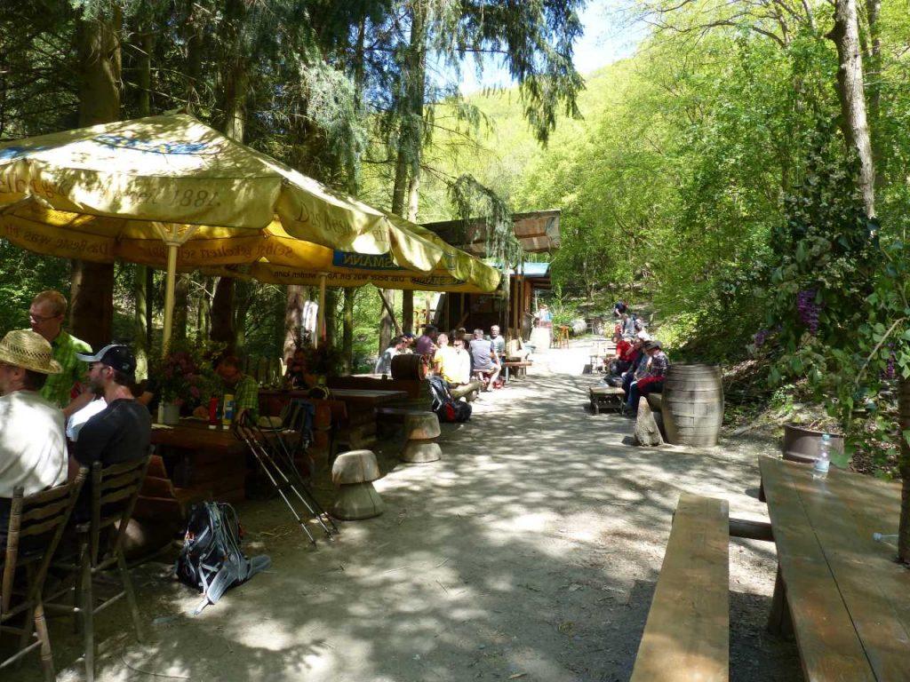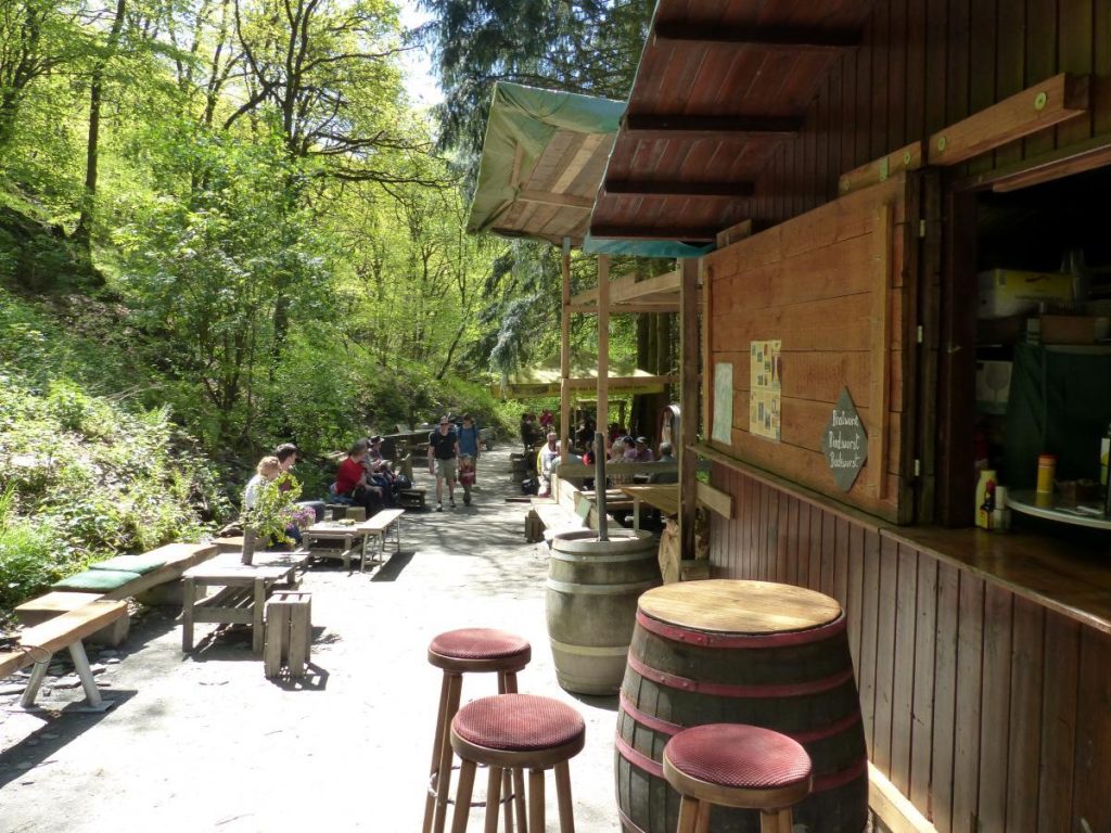 Genau an der richtigen Stelle, zwischen Lorch und Kaub auf dem Rheinsteig nach dem Aussichtspunkt Kauber Blick im Niedertal an der Landesgrenze zu Hessen und Rheinland Pfalz ist es ein besonderer Genuss für Leib und Seele, wenn sich unerwartet, mitten im Wald eine urige Oase offenbart. Leckerer Wein, kaltes Bier, erfrischende Getränke und abwechslungsreiches Essen stehen für eine Stärkung bereit.